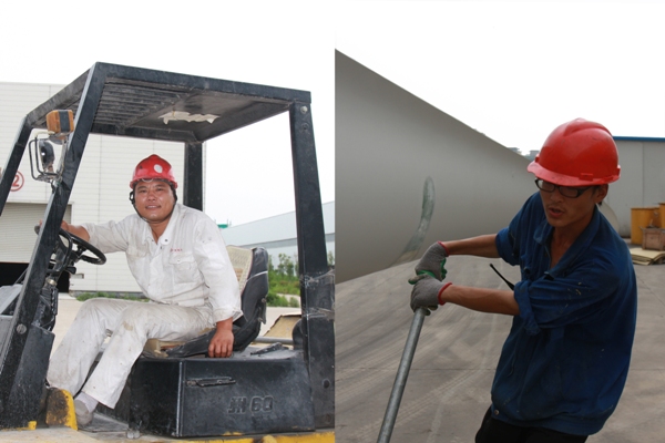 中午一點(diǎn)二十分,正是陽(yáng)光最強烈的時(shí)刻,轉運班的師傅們并沒(méi)有停下手里的工作,依然忙碌著(zhù)。出了機加工車(chē)間,轉運班的徐光印師傅正在和他的搭檔小丁轉運剛脫模的38米葉片。兩個(gè)人到轉運班工作的時(shí)間都不是很長(cháng),但配合起來(lái)卻很默契,一只只葉片在他們的默契之下被成功地擺放到指定位置?!艾F在氣溫高了,公司也很體諒我們,每天都會(huì )為我們準備綠豆水,這樣我們工作起來(lái)也有干勁?!毙鞄煾甸_(kāi)心地說(shuō)。