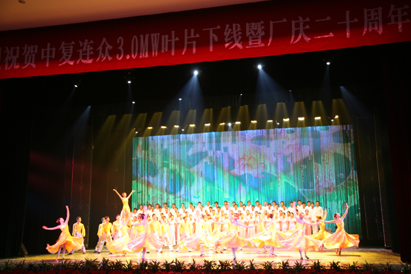 國家發(fā)改委能源研究所副所長(cháng)李俊峰,中國可再生能源學(xué)會(huì )風(fēng)能專(zhuān)業(yè)委員會(huì )秘書(shū)長(cháng)秦海巖,中國農機協(xié)會(huì )風(fēng)力機械分會(huì )秘書(shū)長(cháng)祁和生,中國建材雜志社秦春雨,來(lái)自沈陽(yáng)、酒泉和包頭的地方領(lǐng)導,中國建材集團及其下屬企業(yè)的領(lǐng)導,以及包括上海電氣、東方汽輪機公司、湘電風(fēng)能等在內的中復連眾國內外合作伙伴及客戶(hù)、員工等歡聚一堂。南京軍區前線(xiàn)文工團為中復連眾20周年慶典獻上了精彩文藝節目,共?!爸袕瓦B眾輝煌20年”。慶典在中復連眾數百名員工的合唱中“風(fēng)啊風(fēng),吹啊吹,我的翅膀跟著(zhù)飛……”推向了高潮。