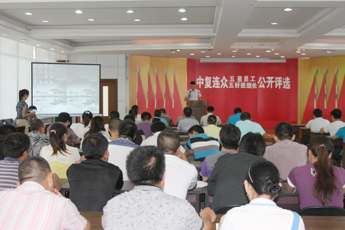 7月28日,中復連眾2012年第二季度五好員工、五好班組長(cháng)公開(kāi)評選活動(dòng)如期舉行。本次評選共有40名員工報名,經(jīng)過(guò)組委會(huì )篩選,最終有31名入圍。根據規則,9名主席團成員和36名員工評委組成評委團現場(chǎng)打分。