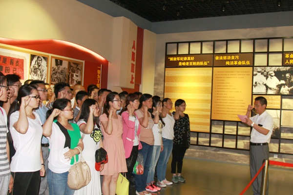 在淮海戰役廉政教育專(zhuān)題展廳,黨員代表握緊拳頭、舉起右手,莊嚴的重溫入黨誓詞。大家紛紛表示,淮海戰役的勝利證明,贏(yíng)得人民信任,我們黨就能無(wú)往而不勝,得到人民的支持,我們黨就能克服任何艱難險阻。先輩們崇高堅定的信仰、艱苦奮斗的精神、清正廉潔的作風(fēng),密切聯(lián)系群眾的優(yōu)良傳統,將引領(lǐng)我們不斷創(chuàng )造新的業(yè)績(jì)。