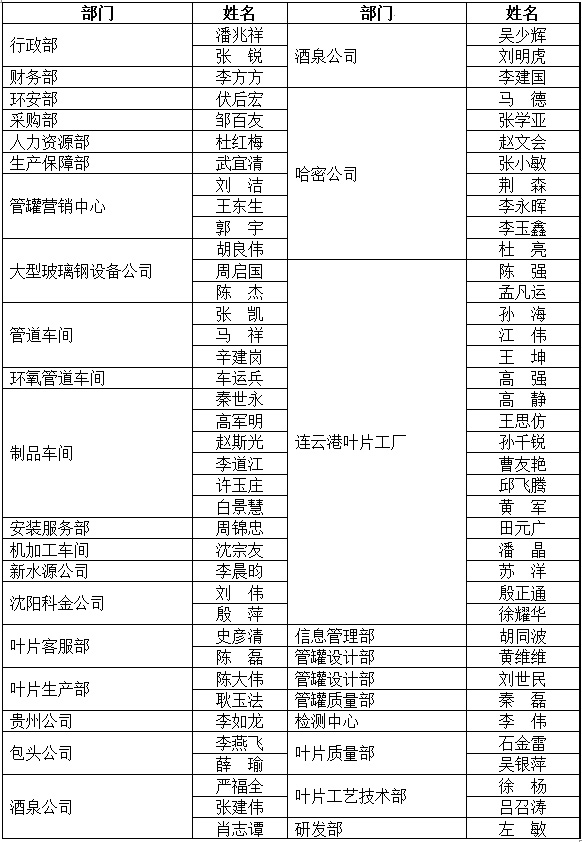 會(huì )議還隆重表彰了中復連眾2015年度10個(gè)先進(jìn)集體、2名標兵和76名先進(jìn)個(gè)人,表彰了“超大口徑純玻璃鋼管道鎖緊接頭的研發(fā)”、“輥涂工藝實(shí)施”等34項科學(xué)技術(shù)獎。