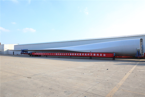 中復連眾海陸通用型風(fēng)機葉片LZ72.5-4.X順利通過(guò)全尺寸靜力測試并完成首套樣機葉片發(fā)運