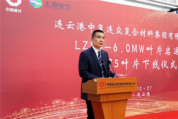 2018年12月27日,中復連眾集團在連云港舉行LZ84-6.0MW葉片啟運暨B75葉片下線(xiàn)儀式。中國建材集團副董事長(cháng)李新華,連云港市人民政府副市長(cháng)徐家保,上海電氣風(fēng)電集團總裁謝雪瓊,中國復材集團黨委書(shū)記、董事長(cháng)、總經(jīng)理劉標,連云港經(jīng)濟技術(shù)開(kāi)發(fā)區黨工委副書(shū)記、常務(wù)副主任胡傳宏共同啟動(dòng)水晶球,見(jiàn)證這一歷史時(shí)刻。
