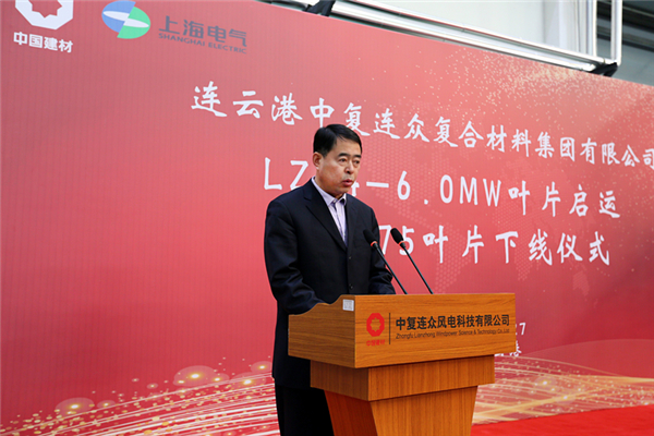 中復連眾集團黨委書(shū)記、總經(jīng)理喬光輝、上海電氣風(fēng)電集團總裁謝雪瓊分別代表合作雙方致辭,中國復材集團黨委書(shū)記、董事長(cháng)、總經(jīng)理劉標,連云港經(jīng)濟技術(shù)開(kāi)發(fā)區黨工委副書(shū)記、常務(wù)副主任胡傳宏對LZ84-6.0MW葉片啟運和B75葉片的成功下線(xiàn)表示祝賀。中復連眾集團副總經(jīng)理、中復連眾風(fēng)電科技有限公司總經(jīng)理梁穎主持儀式。中國建材集團科技部總經(jīng)理郅曉、業(yè)主代表、西門(mén)子技術(shù)團隊及中復連眾集團中層以上干部、中復連眾風(fēng)電科技有限公司員工代表出席儀式。