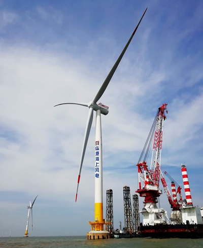 5月9日,上海臨港海上風(fēng)電一期示范項目首臺風(fēng)電機組成功完成吊裝,該機組為上海電氣6.25-172海上風(fēng)機,是全球已吊裝的葉輪直徑最大的海上風(fēng)機。此機組葉片由中復連眾制造,單只葉片長(cháng)84米,功率6.25兆瓦,是全球最長(cháng)玻纖增強葉片。